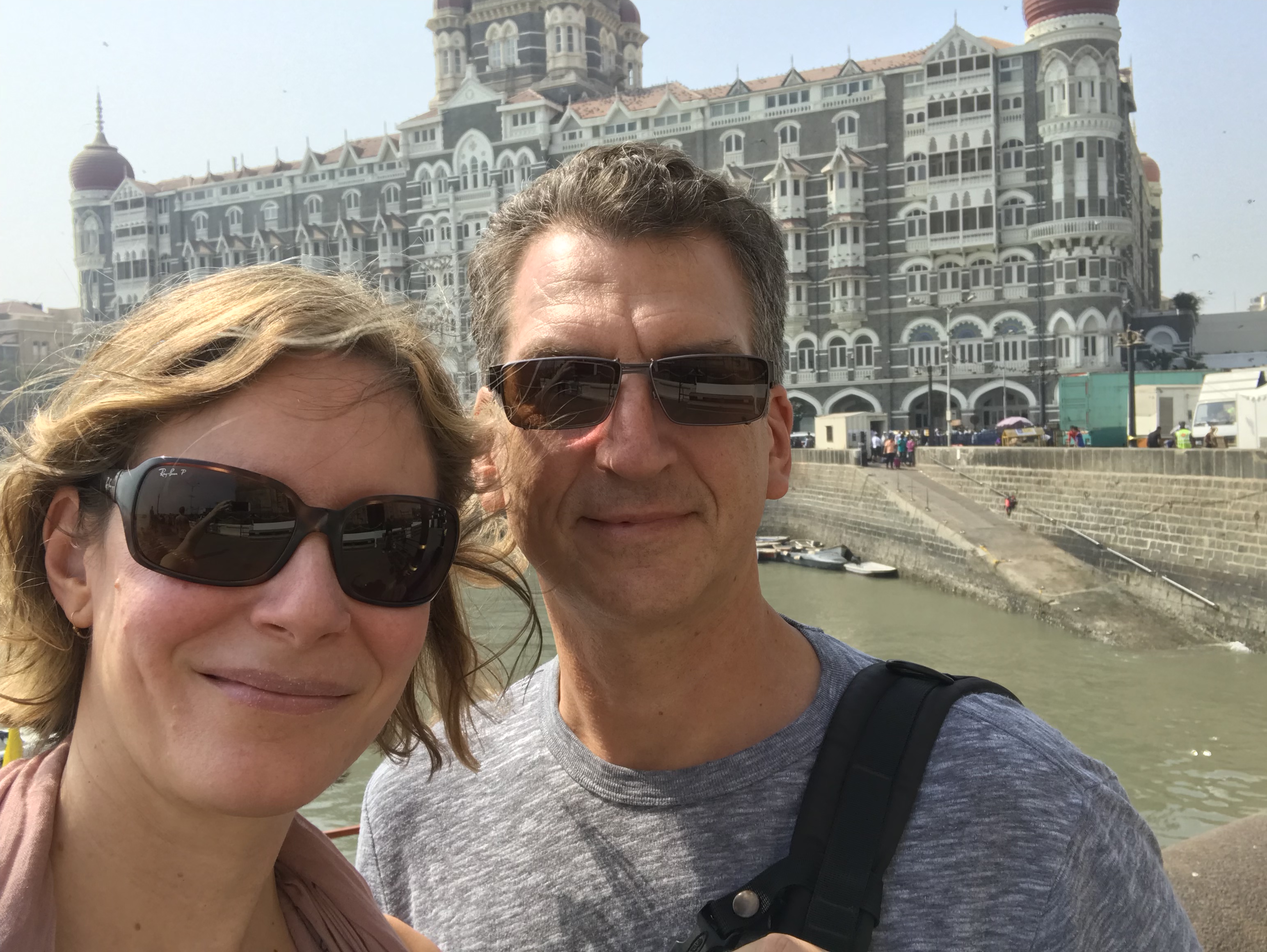 Voilà, nous sommes arrivés en Inde! Mumbaï/Bombai est une ville intéressante et un peu moins dépaysante que nous l’appréhendions. La très forte densité se ressent bien mais il y a moins de bruit et d’odeurs qu’anticipé, sans doute aussi car il ne fait pas trop chaud. La circulation est folle mais fluide et les chauffeurs semblent avoir développé l’utilisation d’un sens supplémentaire pour compenser : l’ouie. Un peu comme des chauves-souris, ils envoient sans cesse des coups de klaxon pour aviser leur entourage de leur présence. Ça ne fonctionne pas tout le temps car nous avons déjà assisté à un accrochage…