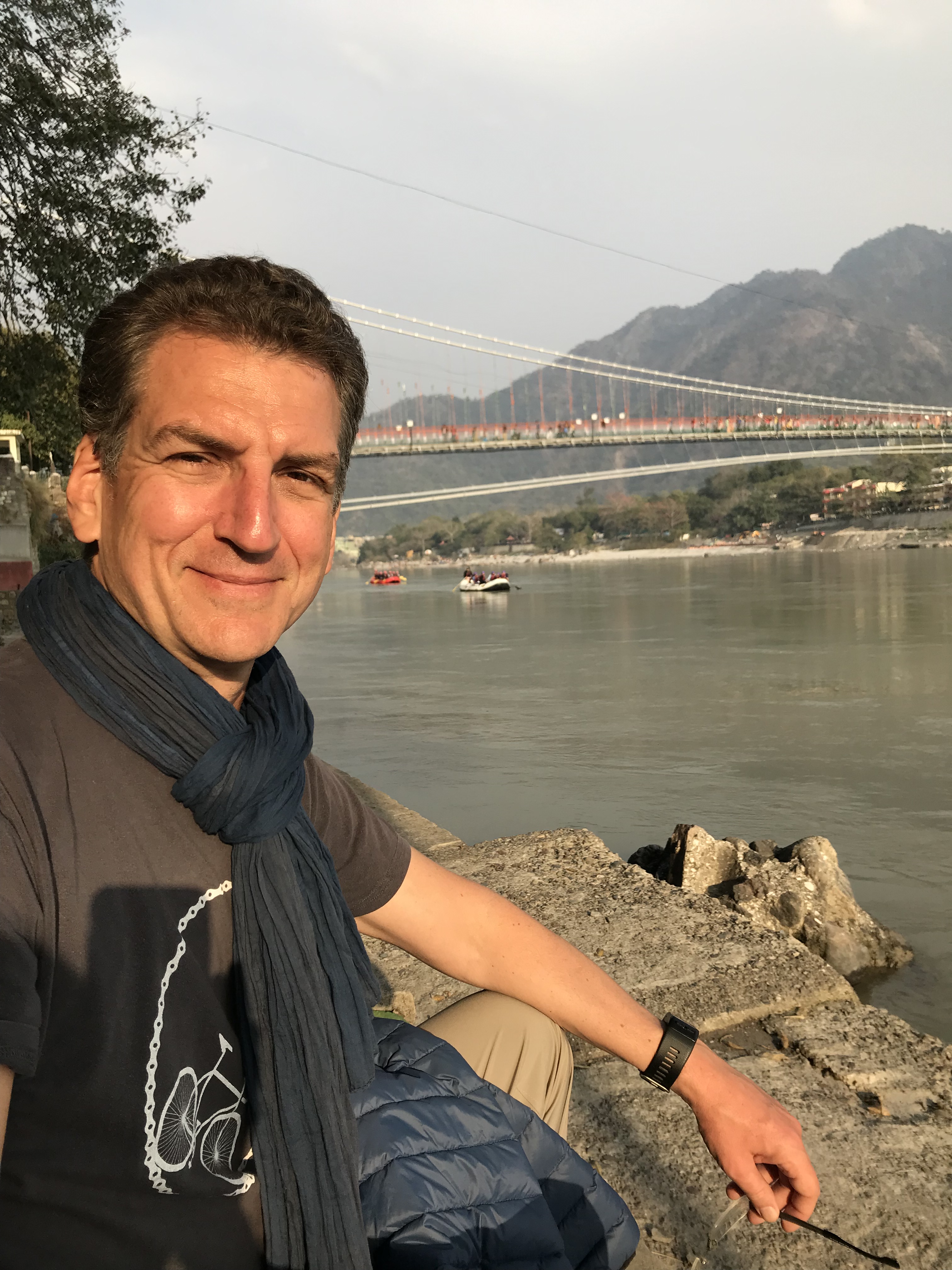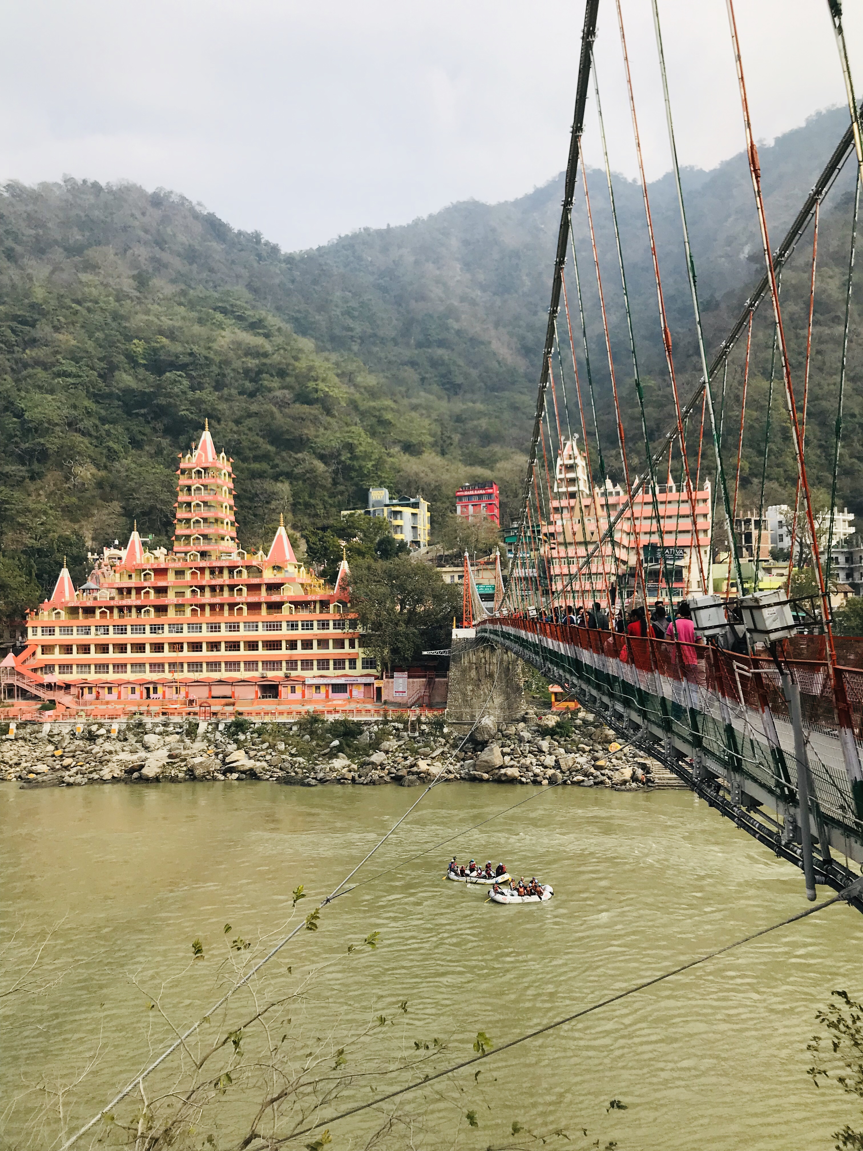 Rishikesh est un village qui borde le Gange mais le fleuve est ici bien différent de ce qu'il est à Varanasi car nous sommes plus près de sa source est il est conséquemment moins pollué et l'eau est plus vive. Le rafting est d'ailleurs une activité prisée ici ainsi que quelques autres activités extérieures.