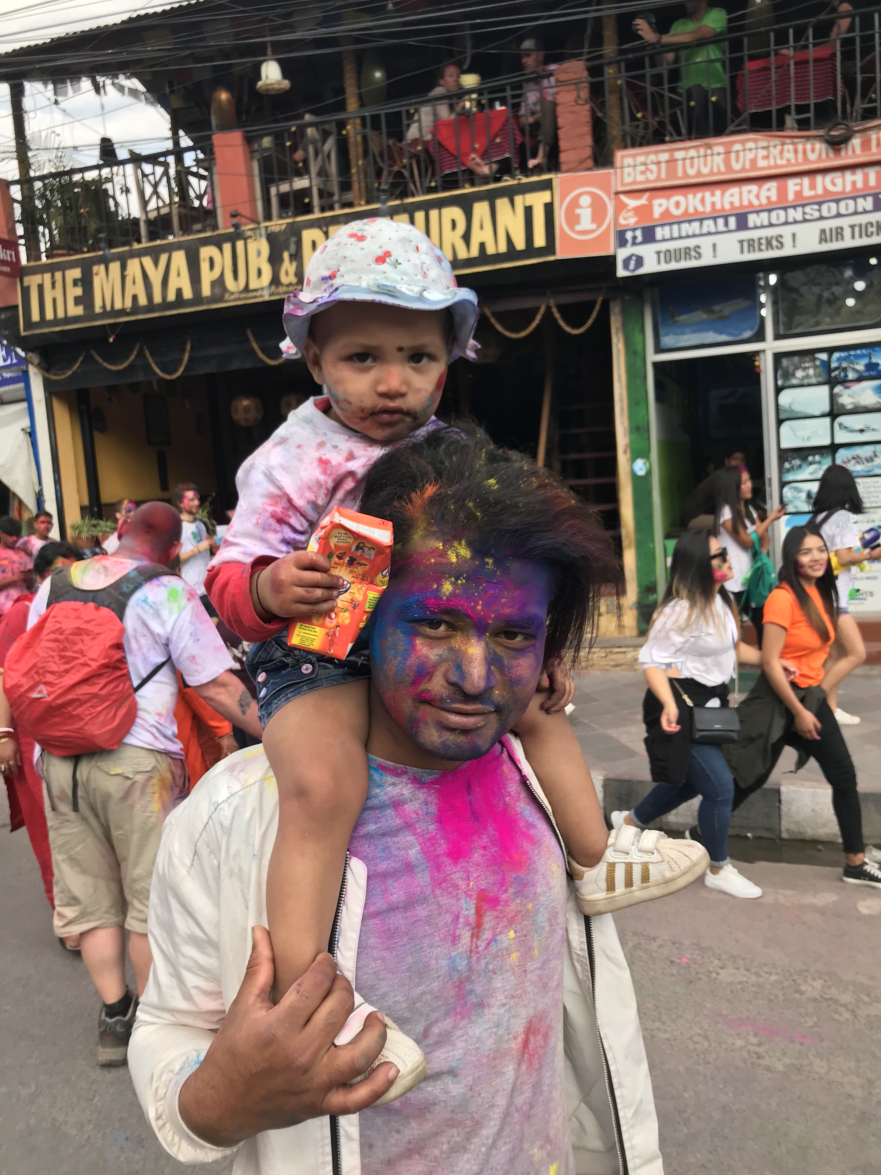 Retour à Pokhara pour un petit lunch et surtout pour entrer de plein pied dans Holi (1), la fête des couleurs qui débute tout juste.