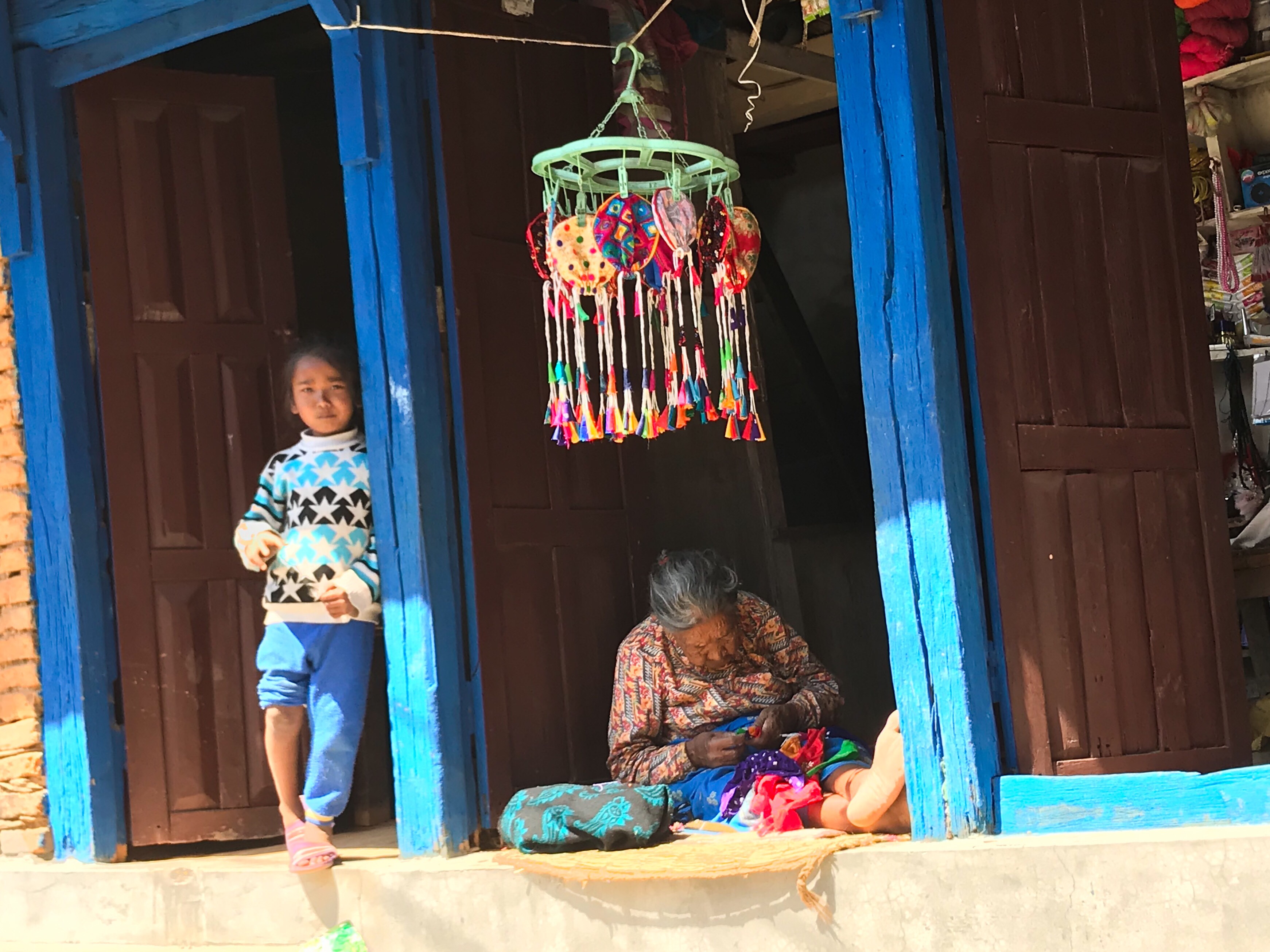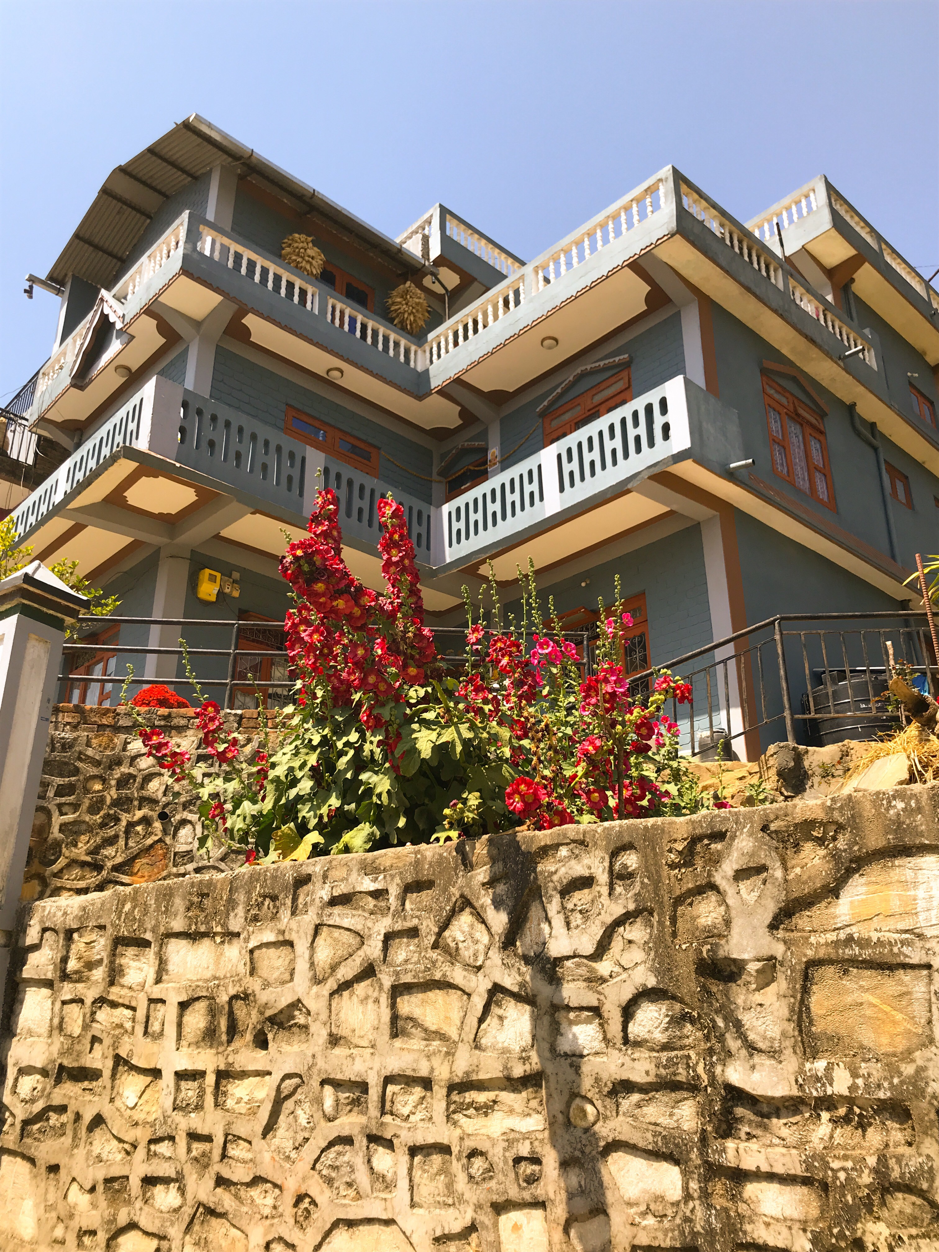 Nous n'avons donc fait aucune activité particulière mais nous nous sommes promenés dans le petit village qui est un curieux mélange de ville médiévale et de village Western... L'architecture est atypique pour le Népal et les structures sont d'un mélange de bois et de brique. Plusieurs constructions portent encore les marques du tremblement de terre de 2015, comme à Katmandou.