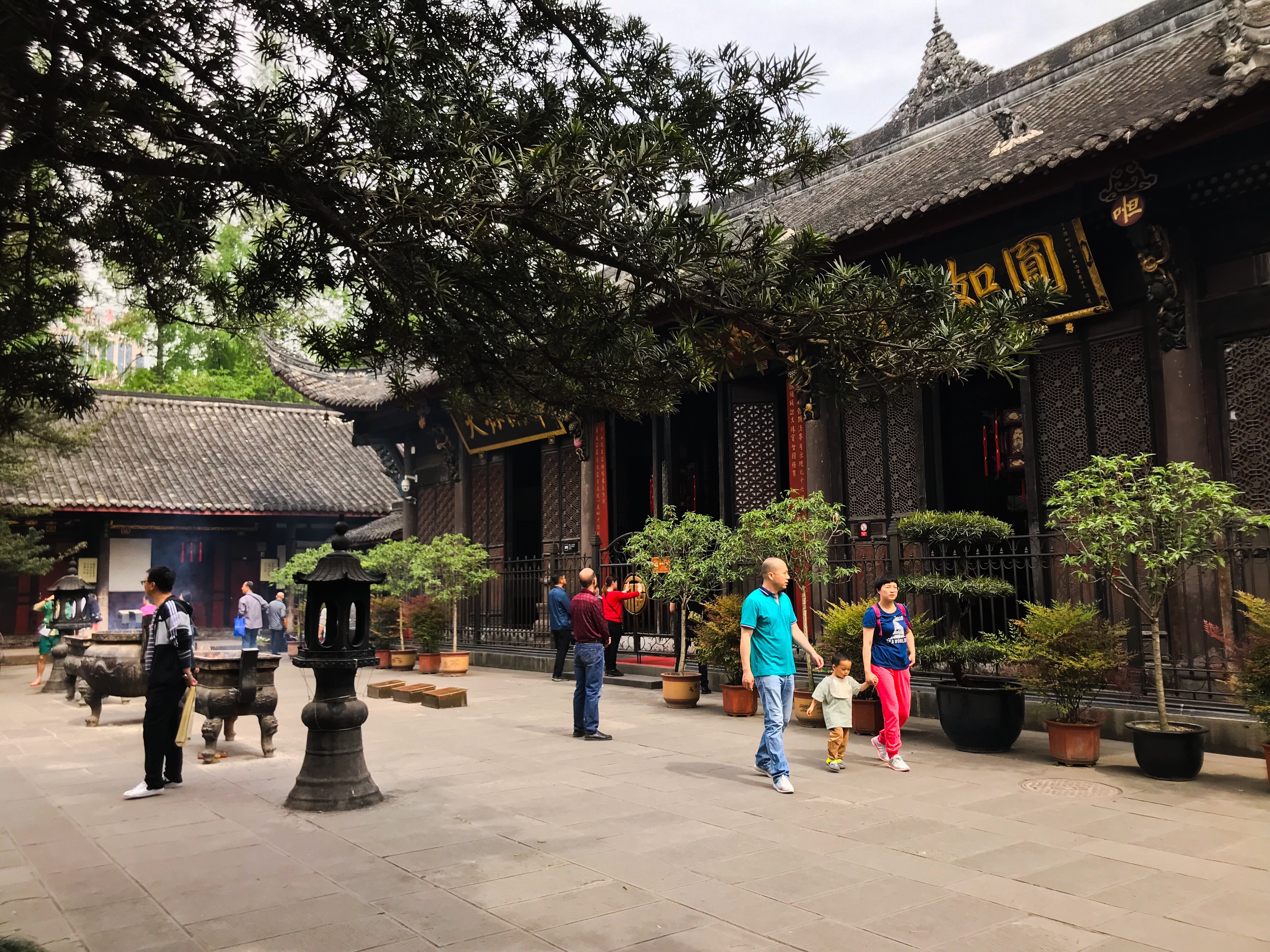 Dernière journée à Chengdu, notre train pour Chongqing est en après-midi et nous prenons la matinée pour visiter le monastère de Wenshu, non loin de notre hôtel et qui possède de magnifiques jardins et plusieurs temples et pagodes.