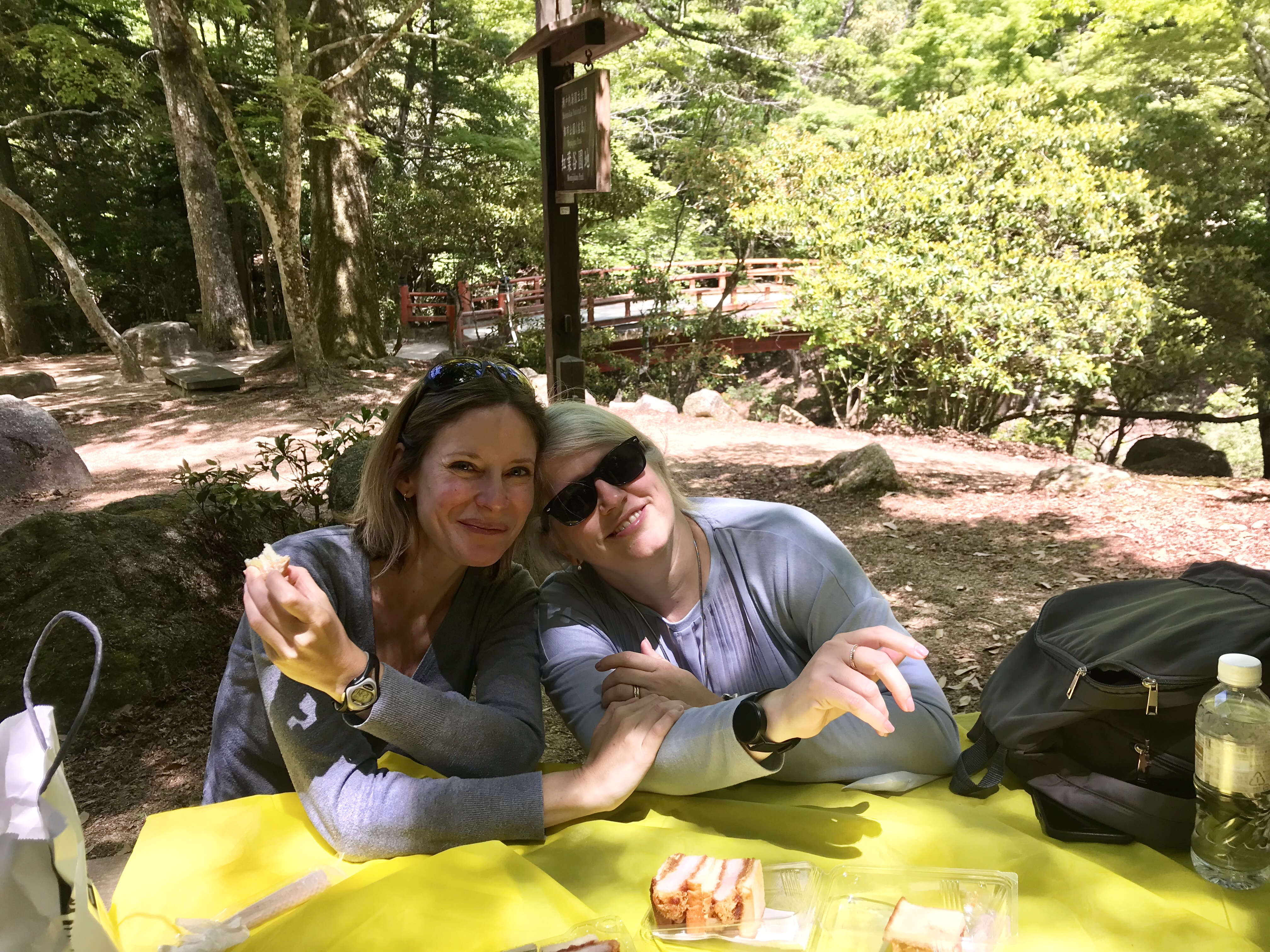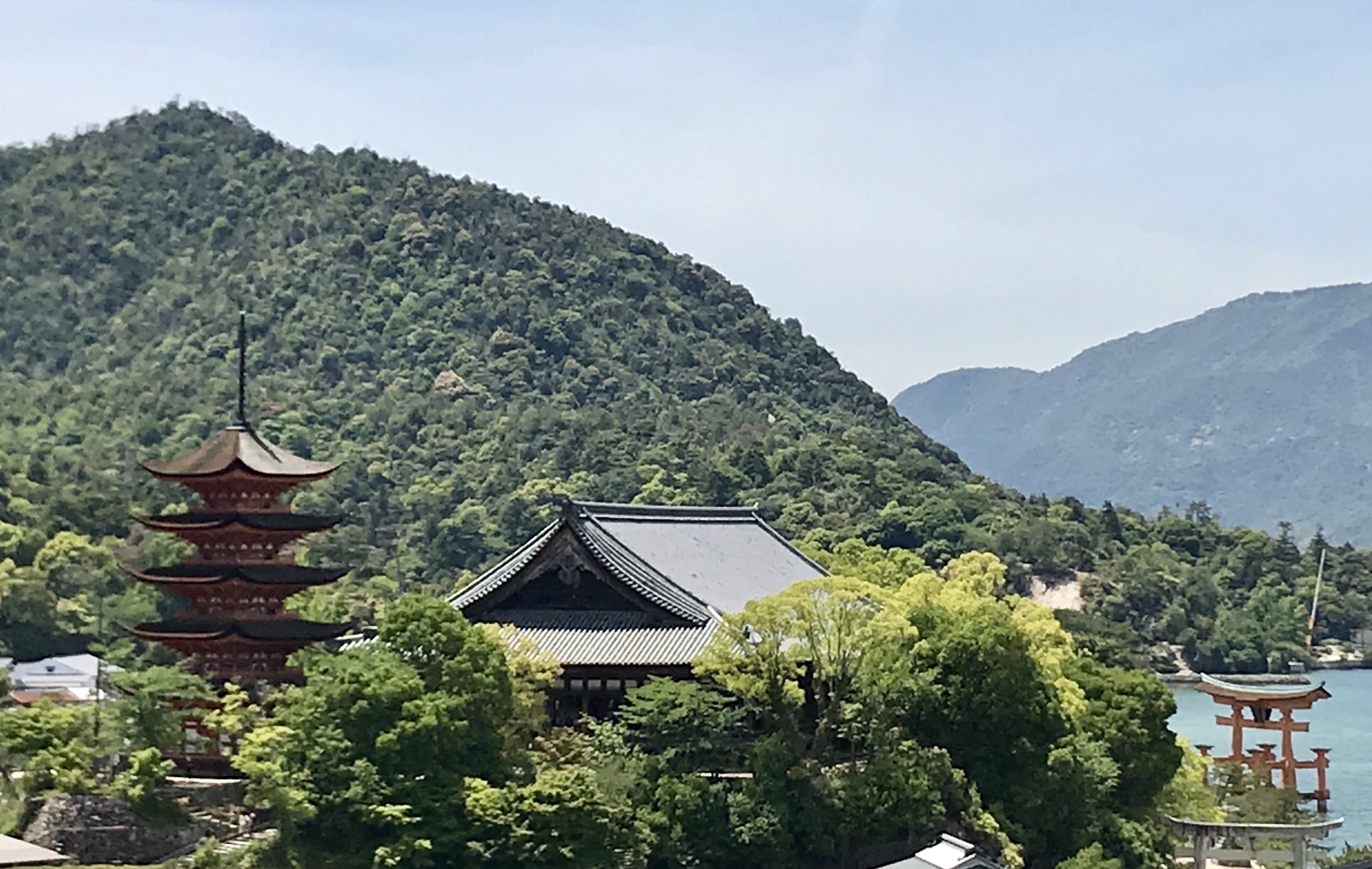 L'île est parcourue de sentiers pédestres qui s'enfoncent dans une forêt hébergeant des cerfs peu farouches. Nous en avons profité pour faire l'ascension du mont Misen, nous arrêtant pour pique-niquer en chemin. Une belle et exigeante randonnée qui nous aura ramenée au village pour le coucher du soleil, dans la baie où le torii resplendissait sous la lumière de cette belle fin de journée.
