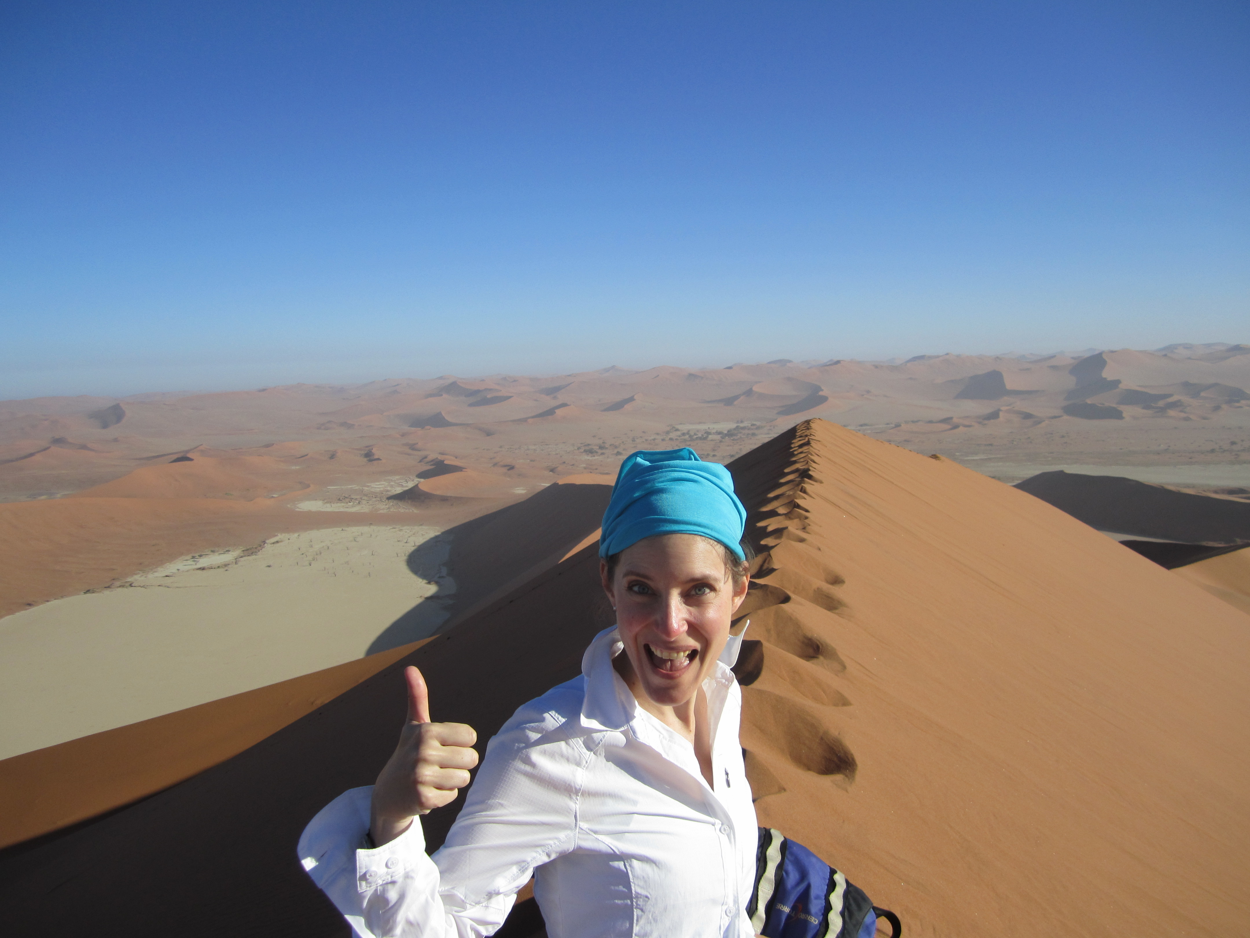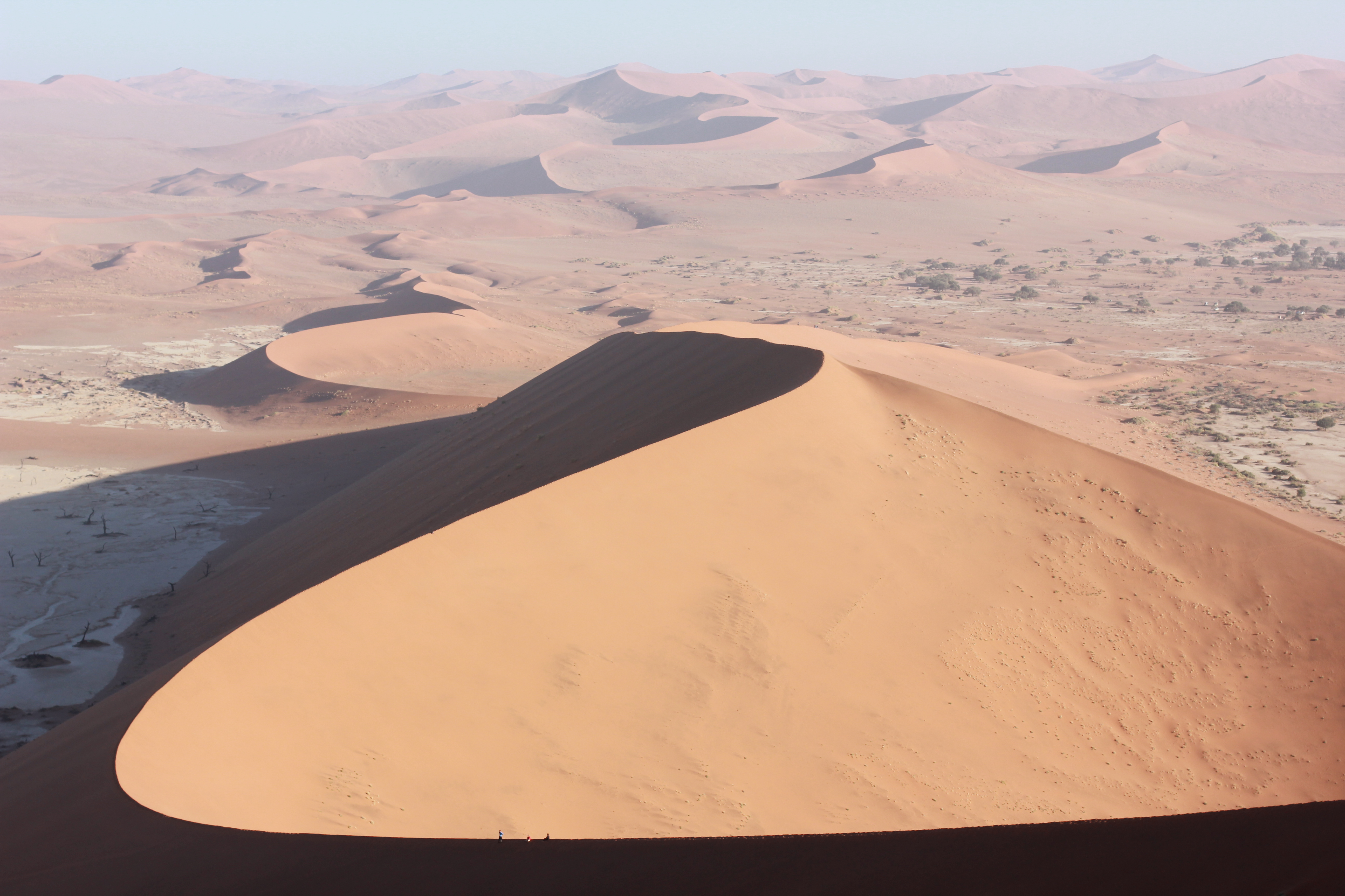 Ce matin, même scénario sauf que nous avons attaqué « Big Daddy », la plus grosse dune du coin qui surplombe Deathvlei, un « pan » où des arbres morts parsèment une surface autrefois boueuse mais maintenant craquelée par la sécheresse.